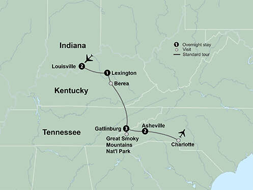 Take a delightful trip through the heart of Appalachia, discovering the equestrian culture of Kentucky, the pioneer spirit of Tennessee, and the mountainous beauty of North Carolina. Get a taste of Bourbon, baseball, and Thoroughbreds in Louisville and Lexington, Kentucky. Travel through Daniel Boone National Forest as you make your way to Gatlinburg, Tennessee. From your home base of Gatlinburg, explore the natural wonders of Great Smoky Mountains National Park. After a day of exploring, relax and tap your toes during Dolly Parton’s Stampede and Dinner Show. Travel on to Asheville, North Carolina, and enjoy the city’s historic architecture, engaging neighborhoods and robust arts districts. Tour the Biltmore Estate, George Vanderbilt’s “little mountain escape” in the Blue Ridge Mountains. When you leave, you’ll have the warmth and charm of southern Appalachia still in your heart.